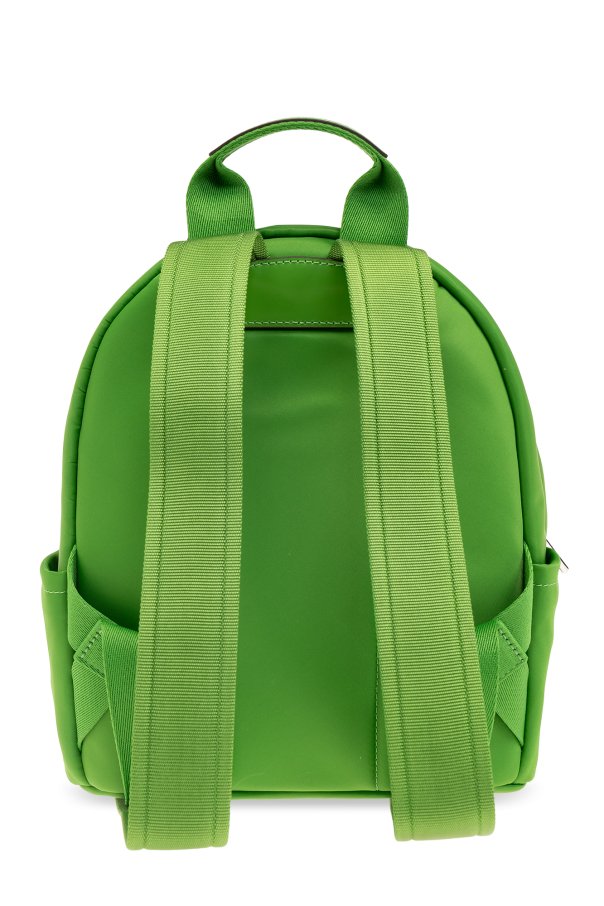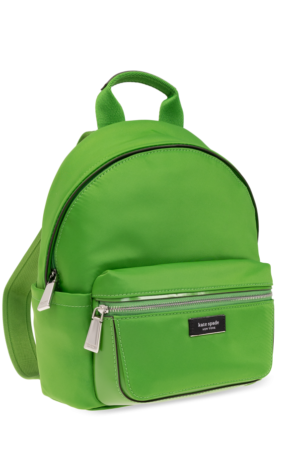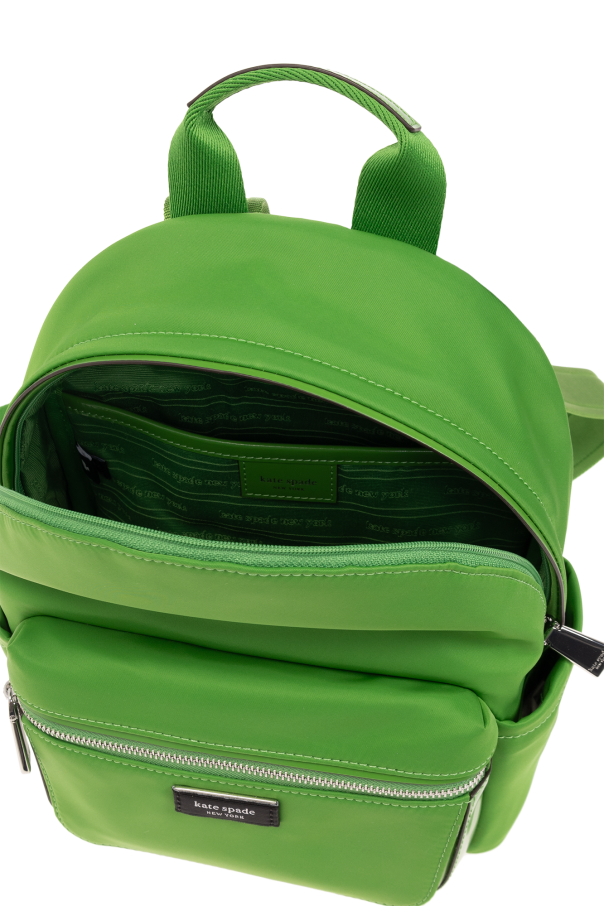 Introducing the 'Sam Icon' Backpack by the illustrious designer, Kate Spade, a piece that promises to elevate your accessory game with its radiant and eye-catching vivid green hue. This backpack, meticulously crafted from high-quality recycled nylon and polyester, not only stands as a testament to sustainable luxury but also showcases a sleek, glossy finish that hints at its premium composition. The 'Sam Icon' flaunts a classic, rounded silhouette with a convenient, horizontally placed front compartment adorned with a silver zipper, providing a striking contrast against the lush green fabric. The front pocket is elegantly embellished with the designer's silver logo, adding a touch of sophistication and brand prestige. Designed for the modern individual, it features a top handle and adjustable back straps, ensuring comfort and versatility in wear. Inside, the backpack reveals additional compartments, thoughtfully integrated to aid in the seamless organization of your essentials, making it an ideal companion for both day-to-day engagements and adventurous outings. Why Purchase This Product? Eco-friendly materials highlight ethical fashion choices. Eye-catching design with a vibrant color to make a bold fashion statement. Functional and stylish with ample storage and organization options. Exquisite details, including designer logos and silver hardware, underscore its exclusivity.