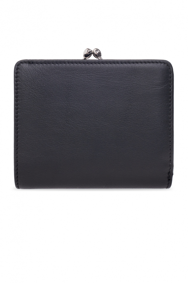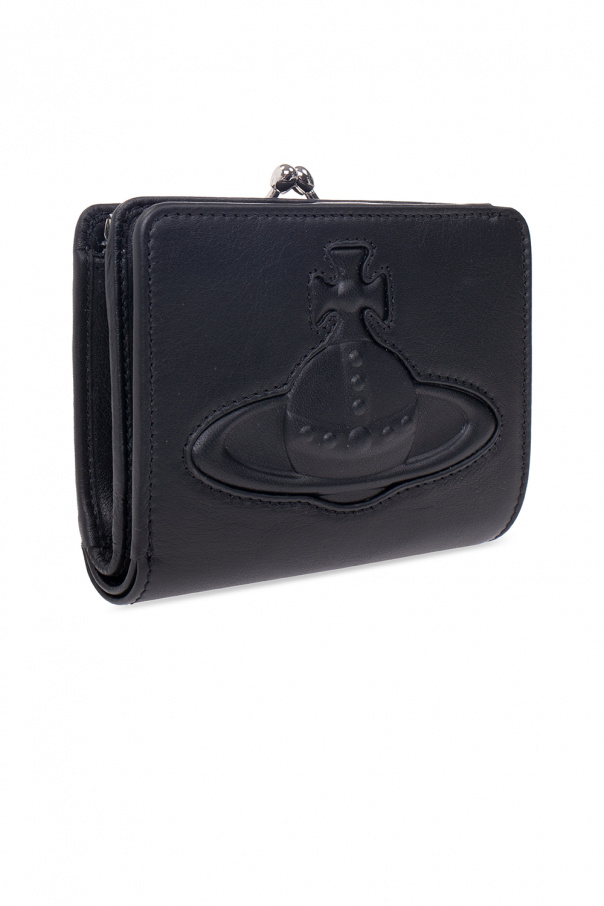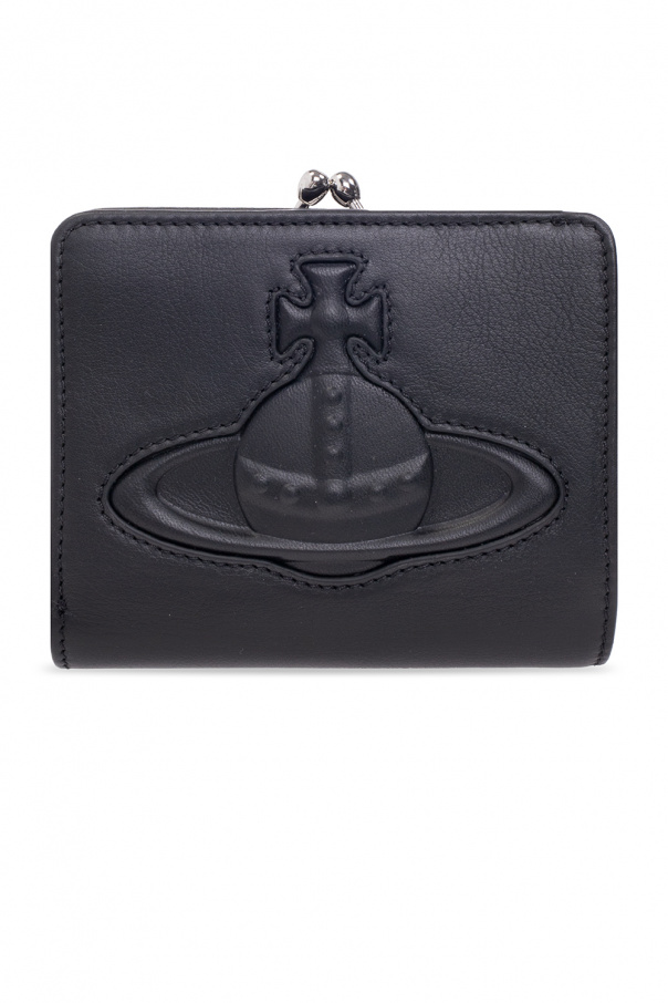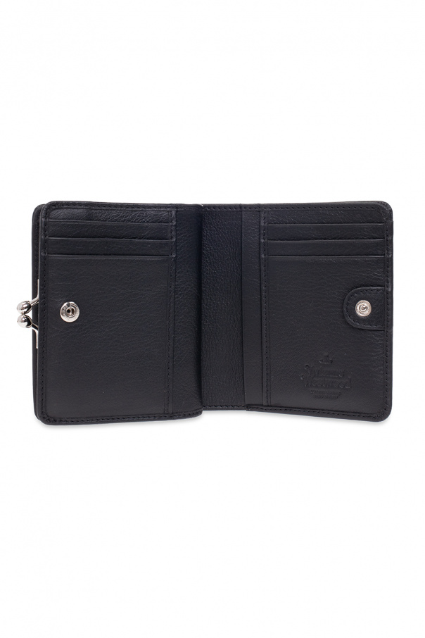 Black ‘Chelsea’ bi-fold wallet from Vivienne Westwood. Made of calf leather, this design features a snap fastening, logo detailing on the front, silver-tone metal hardware, one zip coin pocket and a bill compartment and five card slots inside.