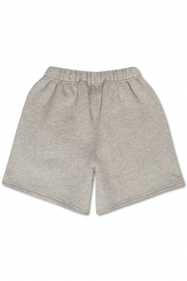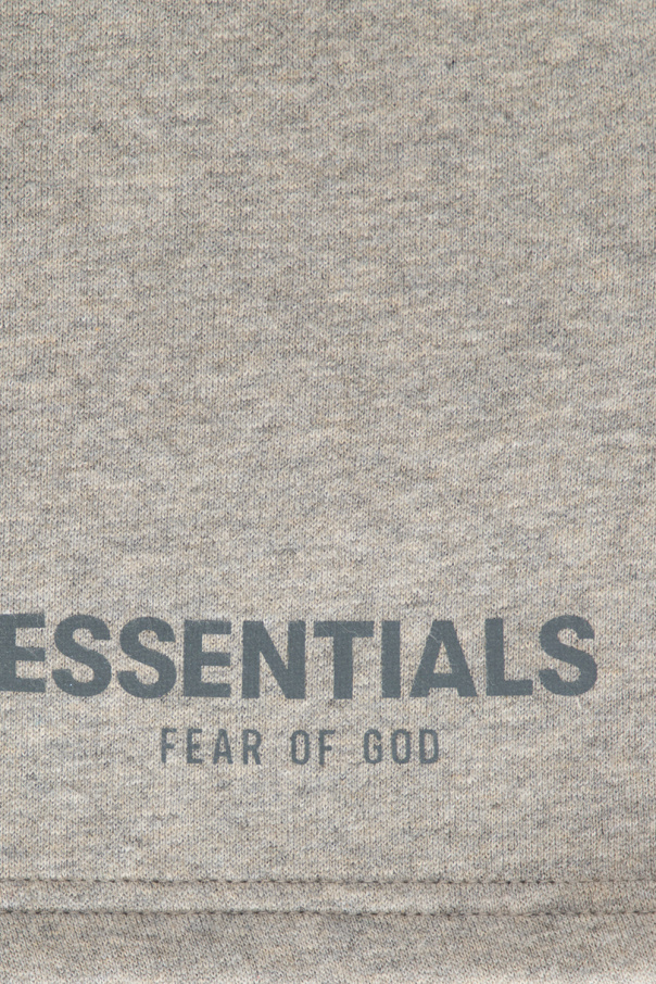 Grey shorts from Fear Of God Essentials Kids. Made of cotton, this pair features a drawstring waistband, two slip pockets, a dark grey graphic print and a logo appliqué.