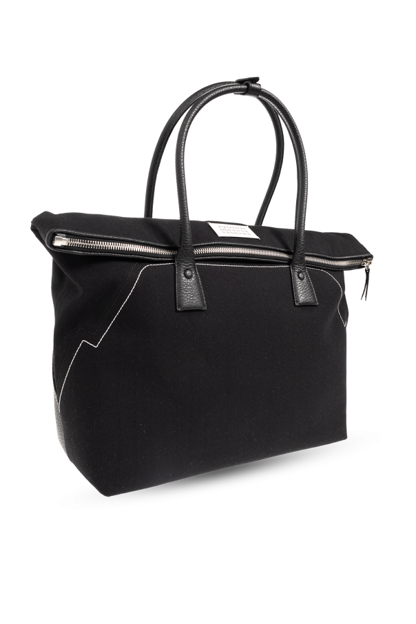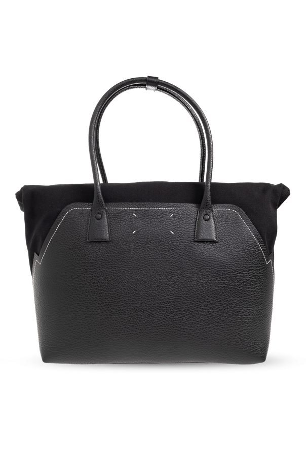 Black ‘5AC’ shopper bag from Maison Margiela. Made of leather and fabric, this design features a zip fastening, the brand’s signature white logo patch on the front, two half-round shoulder straps, silver-tone metal hardware and one internal compartment with one zip pocket.