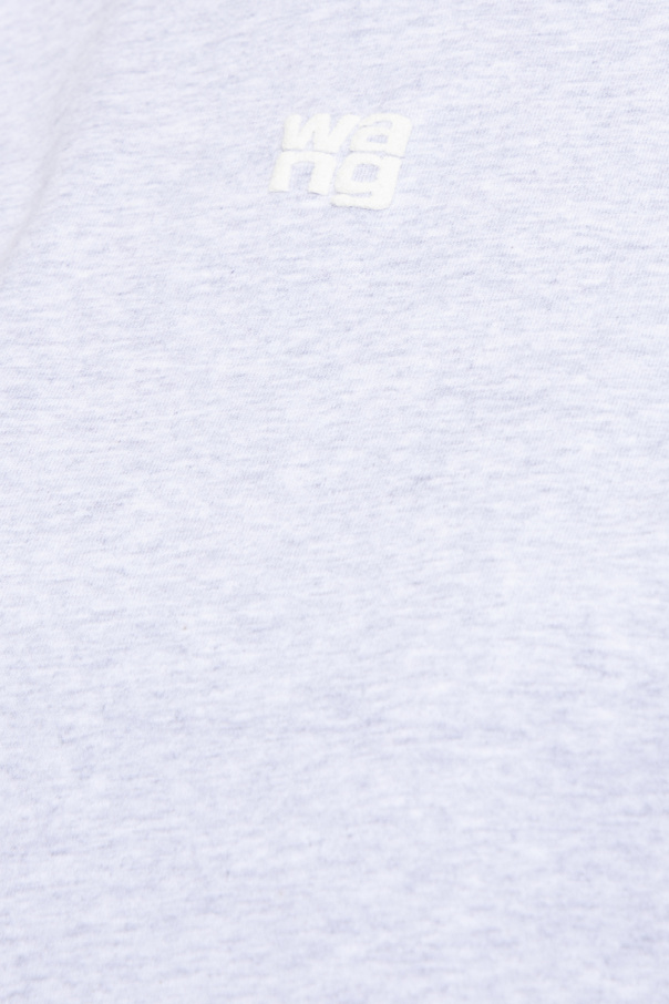 Light grey crewneck T-shirt from Alexander Wang. Made of cotton, this style features short sleeves and the designer's logo printed on the front.
