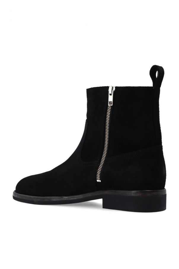 Black ‘Darcus’ ankle boots from MARANT. Made of calf suede, this pair rests on a side zip and black rubber sole with a leather sole.