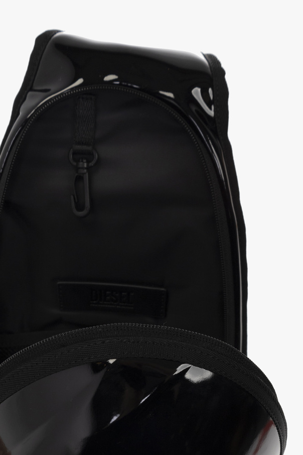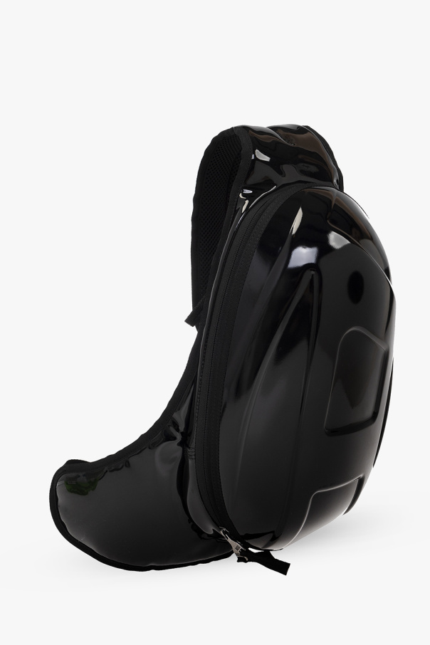 Black ‘1DR-POD SLING’ one-shoulder backpack from Diesel. Made of coated fabric, this design features a two-way zip, raised logo, zipped back pocket, adjustable shoulder strap, dark silver-tone metal hardware and one internal compartment with one zip pocket, one slip pocket and carabiner hook.