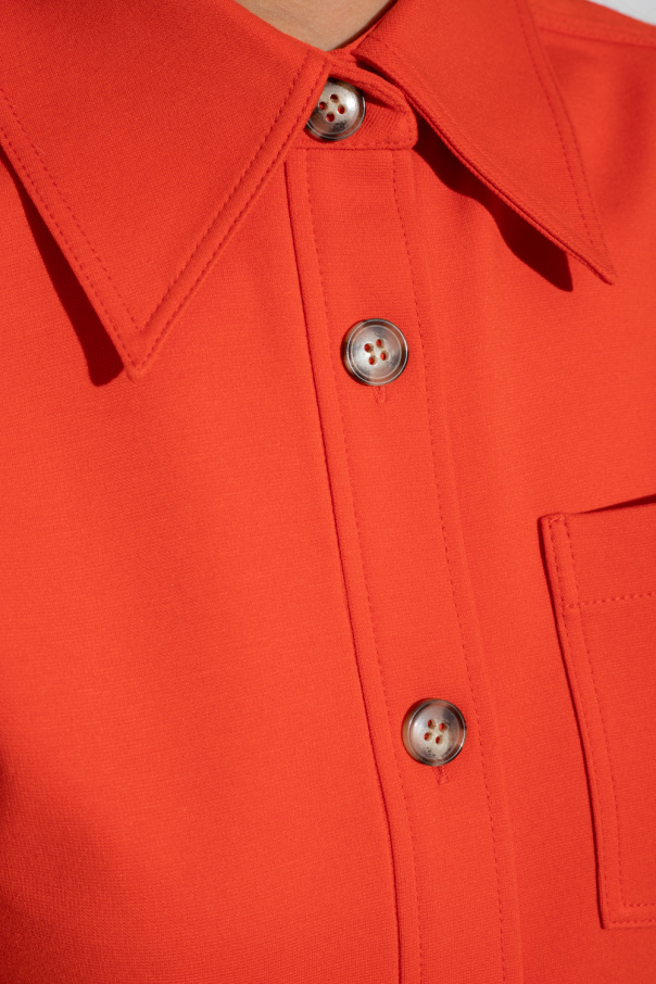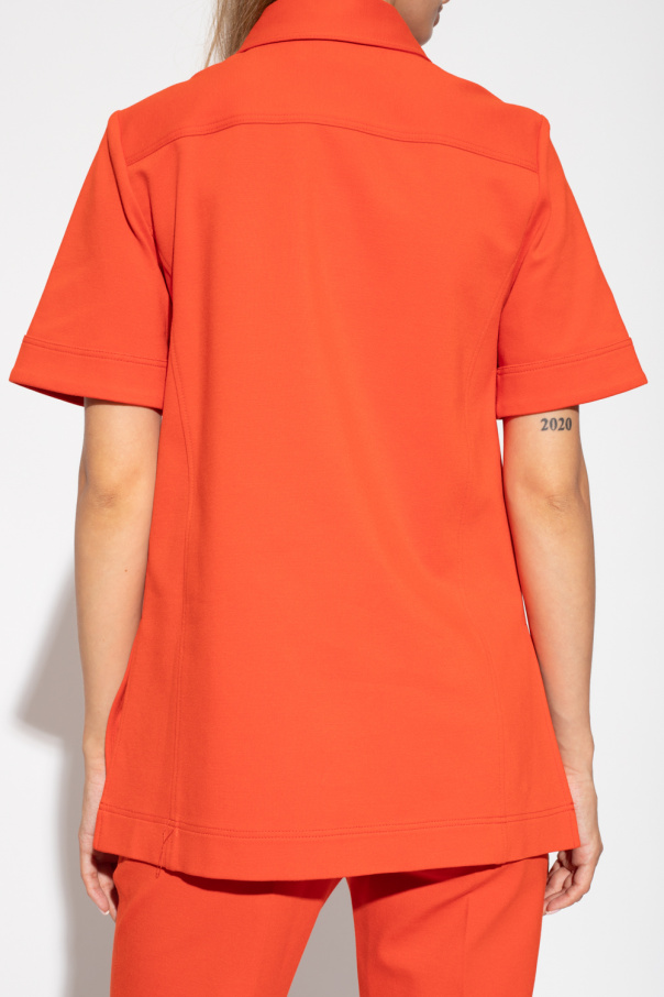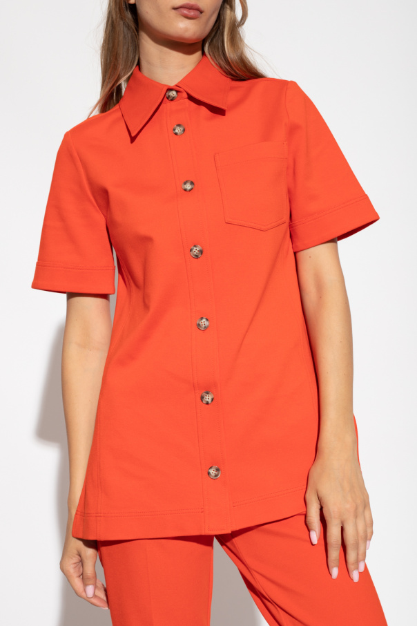 Reddish orange shirt from Victoria Beckham. Fastened with patterned buttons, this style features short sleeves, a slip chest pocket and side slits.