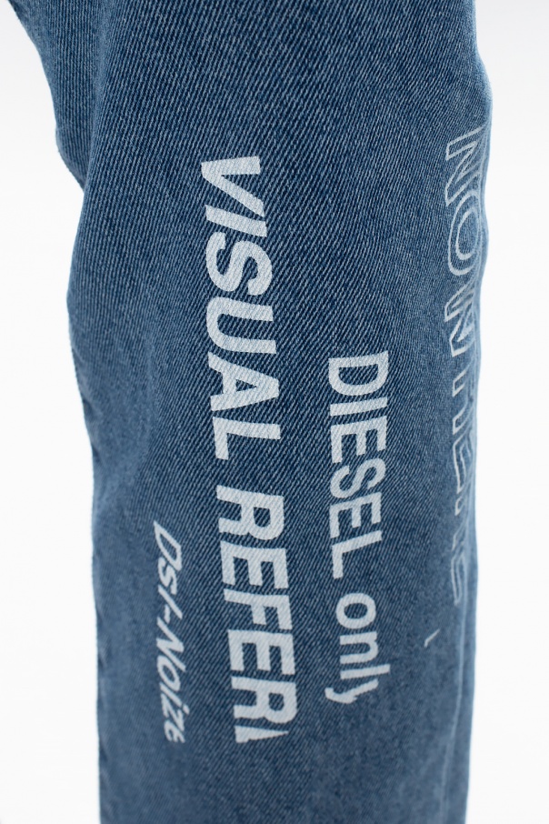 Light blue ‘D-Strukt’ jeans from Diesel. This slim style features zip and button fastening, a white print, five slip pockets and straight legs.