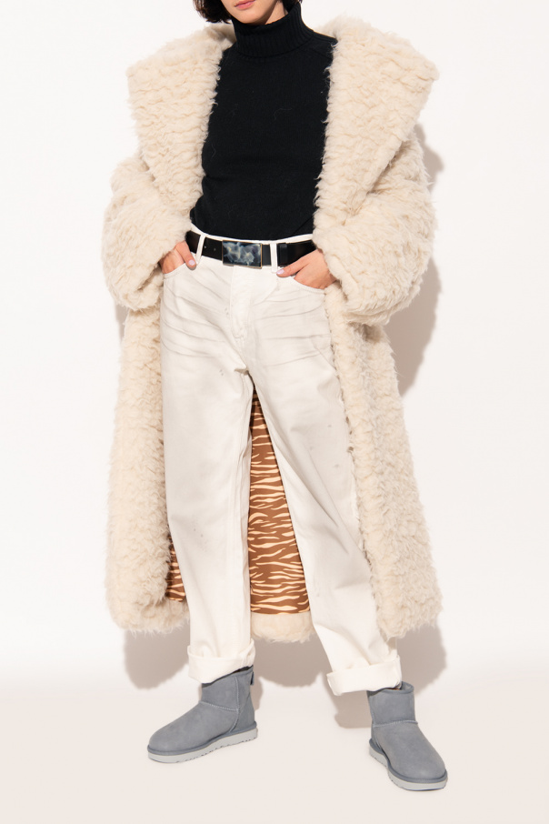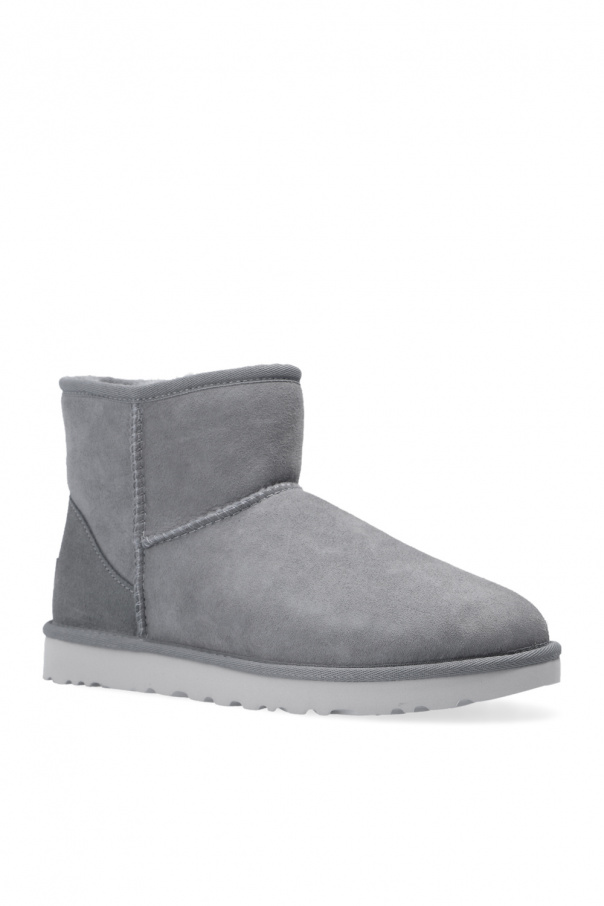 Grey ‘Classic Mini II’ snow boots from UGG. Crafted from sheep leather, this pair features a logo patch at the back and a grey rubber sole.