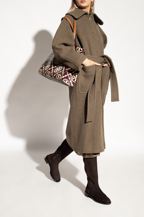 Dark brown ‘Sadie’ boots from Stuart Weitzman. Crafted from suede, this model sits on a black rubber sole and features a side zipper.