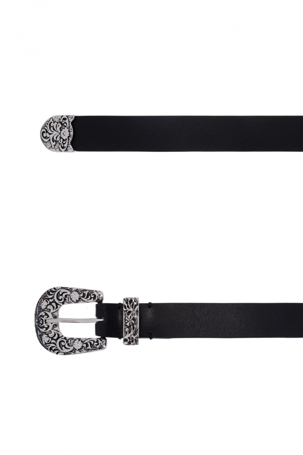Black belt from Acne Studios. Made of leather, this item features a decorative silver-tone metal buckle.