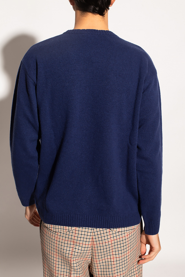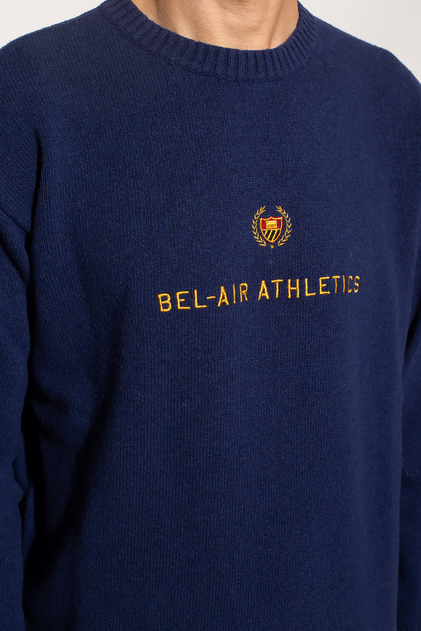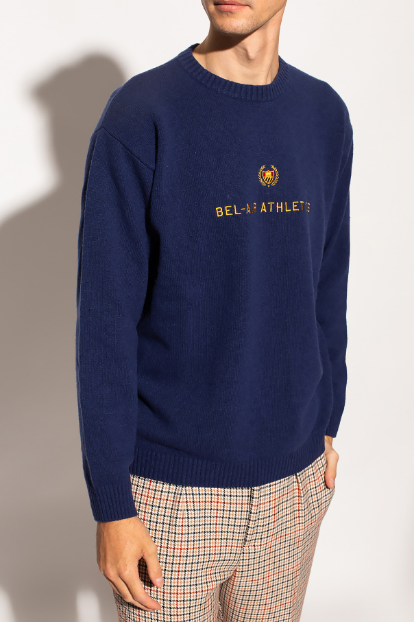 Navy blue crewneck sweater from Bel-Air Athletics. Crafted from a wool blend, this style features colourful graphic embroidery with the brand's logo and long sleeves.