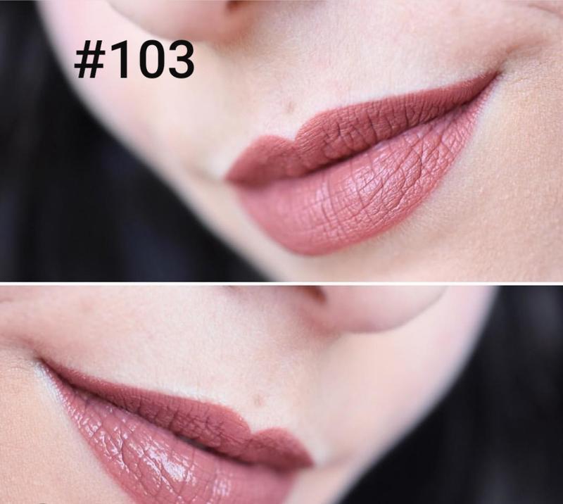 тон 103Помада отлично наносится, равномерно распределяется и гарантирует стойкое покрытие без жирной пленки. Далее следует нанести прозрачный блеск, который не только закрепит и продлит стойкость покрытия, но и прекрасно смягчит и увлажнит чувствительный эпидермис губ