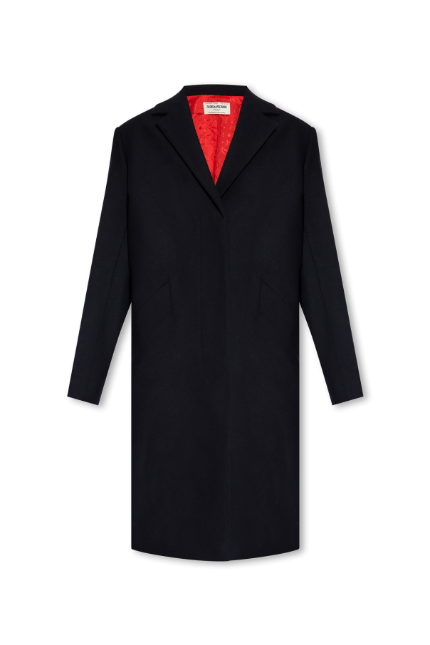 Navy blue ‘Marly’ wool coat from Zadig & Voltaire. Made from wool, this style features button fastenings, notch lapels, two slip pockets and long sleeves.