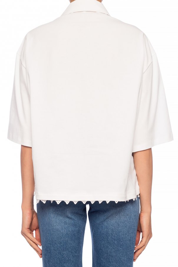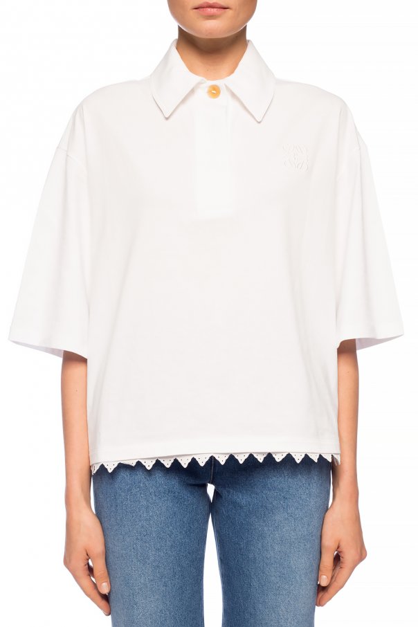 White top from Loewe. Made of cotton. Features button fastening, short sleeves and scalloped hem,