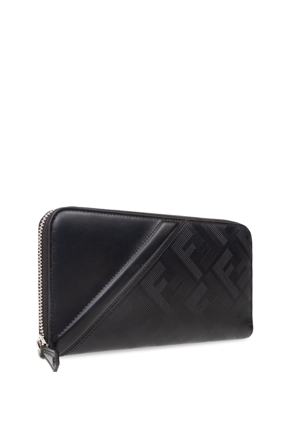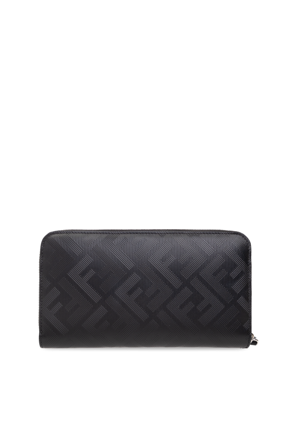 Black wallet from Fendi. Made of leather, this design showcases a textured monogram. It is complete with a zip-around fastening, silver-tone metal hardware and three bill compartments, one zip coin pocket, three slip pockets and eight card slots inside.