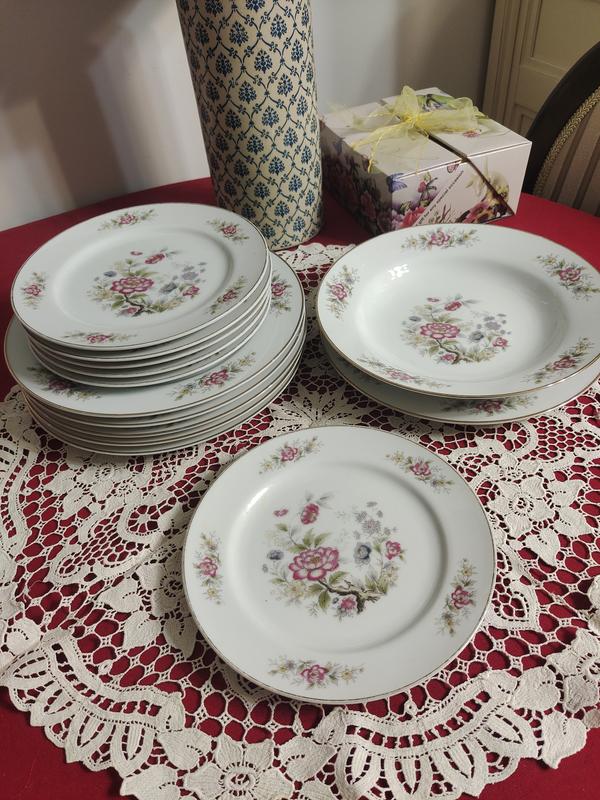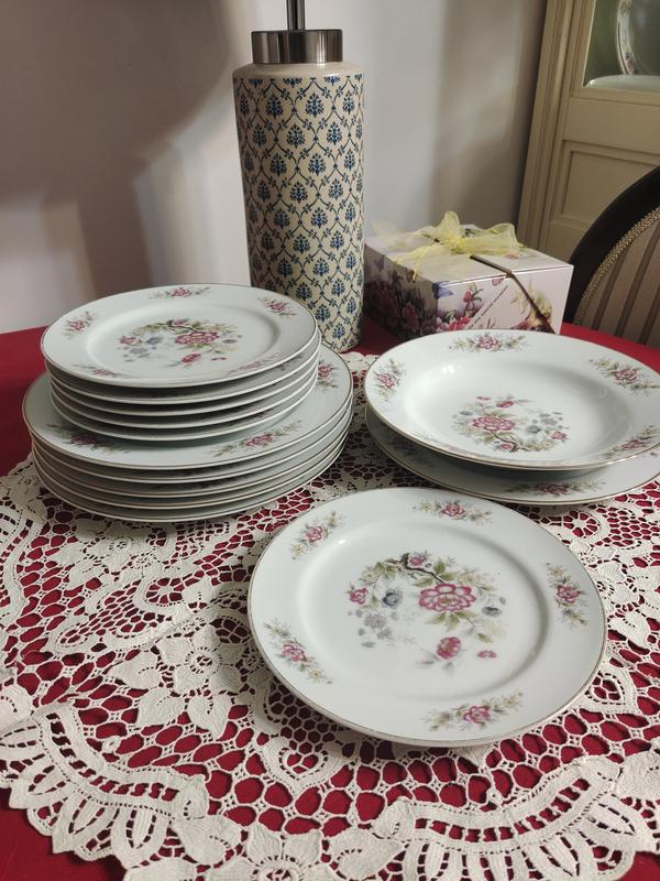 5 суповых, 6 десертных, 6 подставных по 100 гривен, тарелки с минимальными следами пользования, в 1975 году. Якщо набором -то по 70 гривень за тарілку