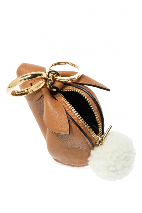 Brown pouch from Loewe. Featuring an animal-inspired silhouette, this leather-crafted item comes with gold-tone metal fittings, including zipper and a keyring.