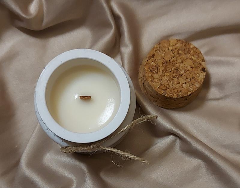 Свечи из соевого воска с деревянным фитилем в гипсовом кашпо ручной работы.