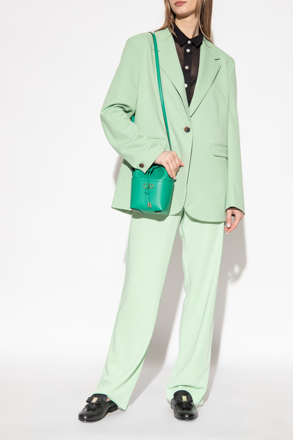 Black ‘Onofria’ slides from FERRAGAMO. Crafted from leather, this pair features a bow, fringes and beige leather sole.