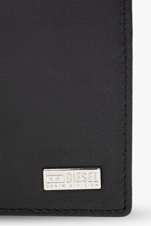 Black ‘D-PLATE BI-FOLD’ wallet from Diesel. Made of leather, this item features a logo detail and metal hardware in silver-tone. It has two bill compartments, one snap-fastened pocket and four card slots inside.
