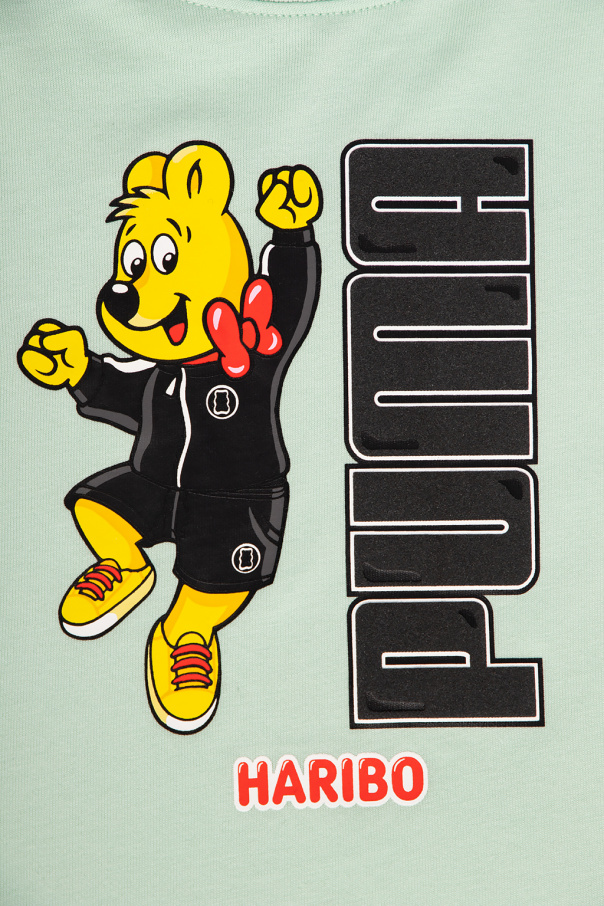 Light green crewneck T-shirt with a printed pattern and raised logo from Puma x Haribo. Made of cotton.