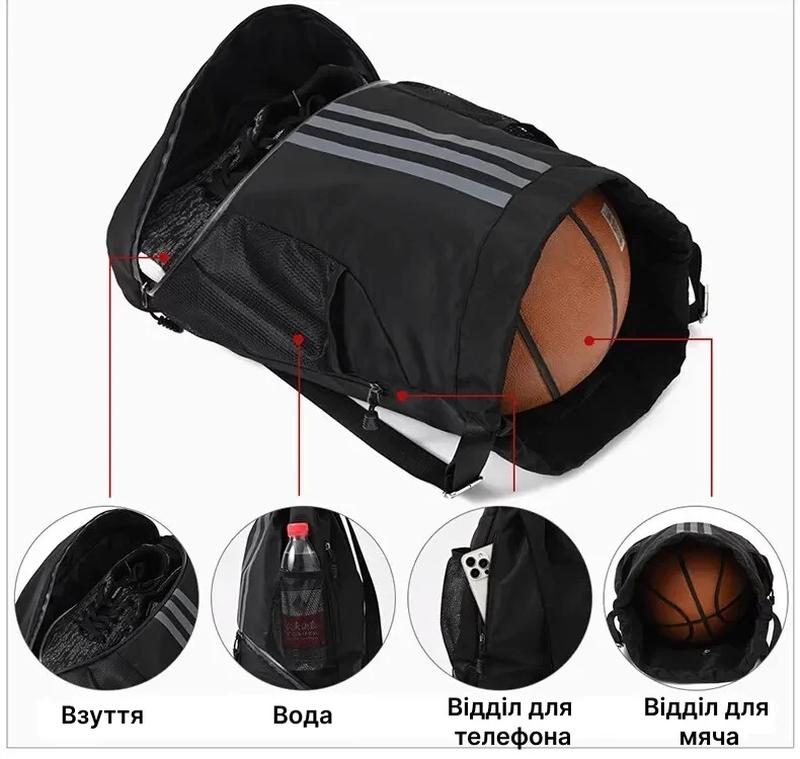Емкость - размер сумки 47*32 см позволяет вместить баскетбольный мяч, а также