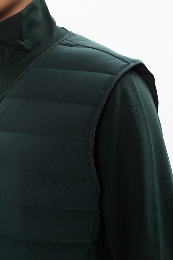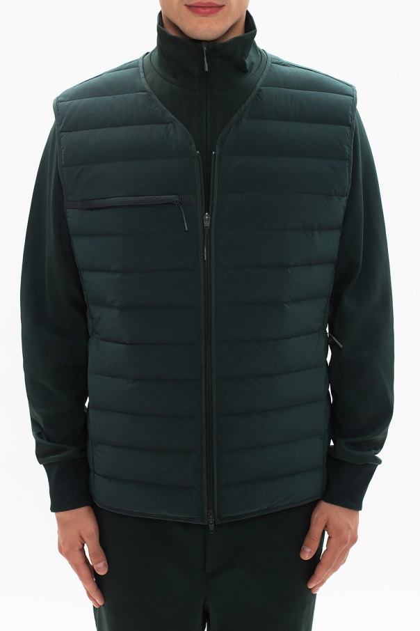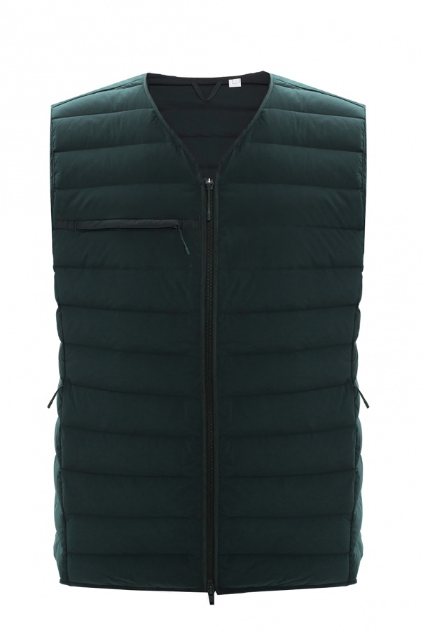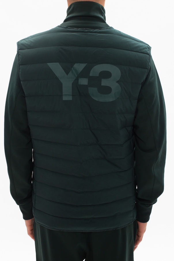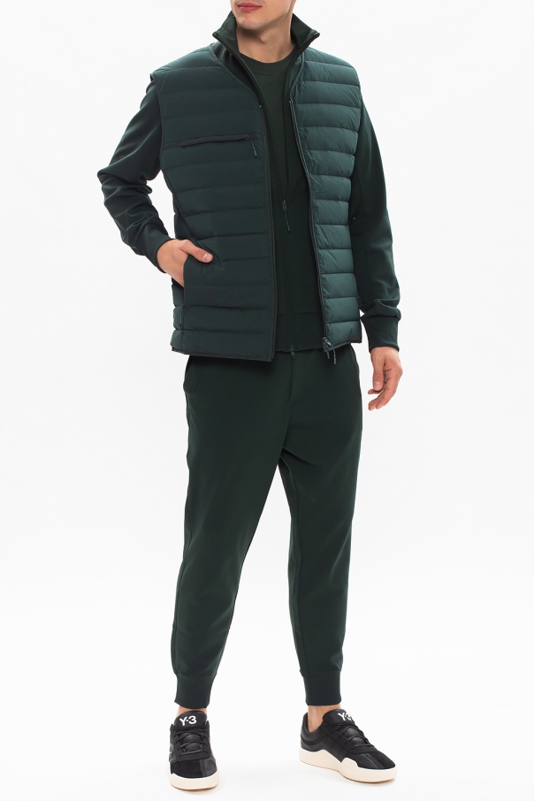 Green quilted vest from Y-3 Yohji Yamamoto featuring zip fastening and three zipped pockets.