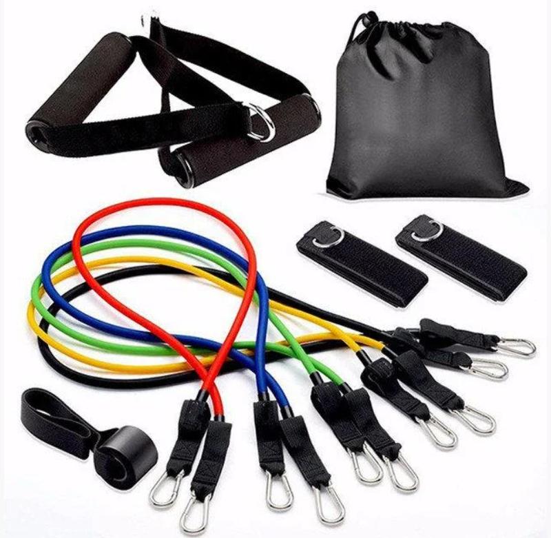 на брусьях. Включает в себя: 5 эспандеров: Черный = 13,5 кг; Зеленый = 11 кг;
