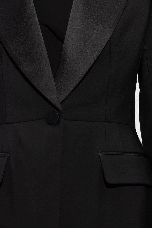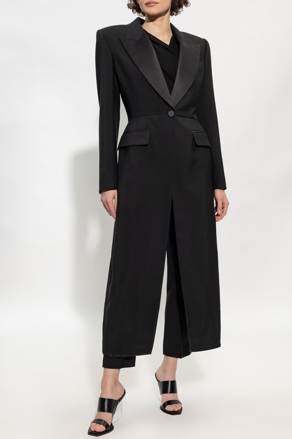 Black tailcoat with peak lapels from Alexander McQueen. Made of wool, this design features button fastenings, two flap pockets and a decorative cut-out at the back.