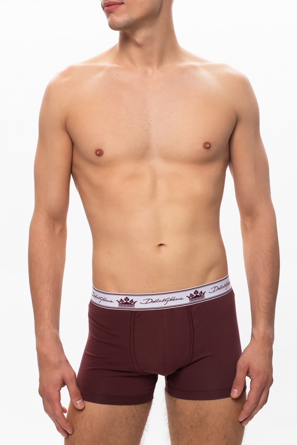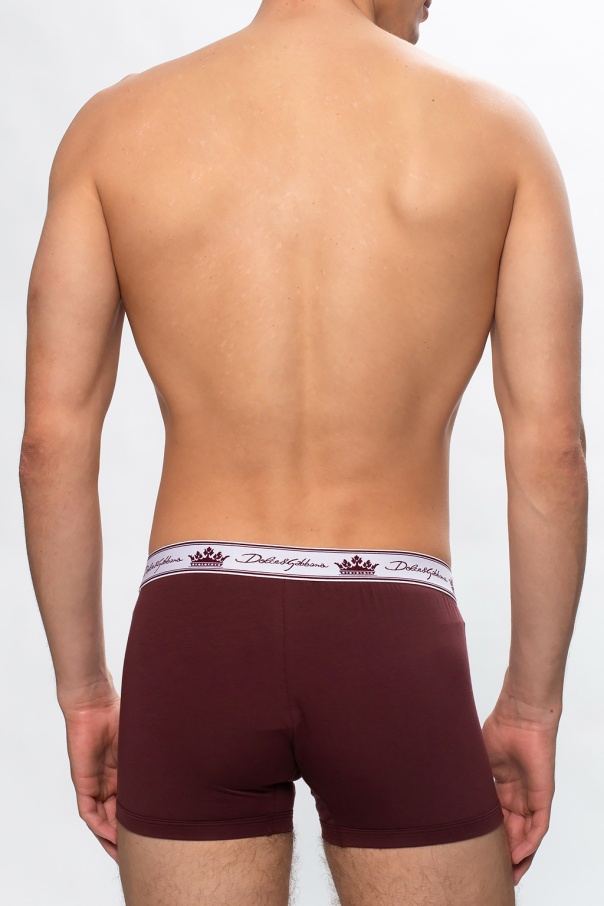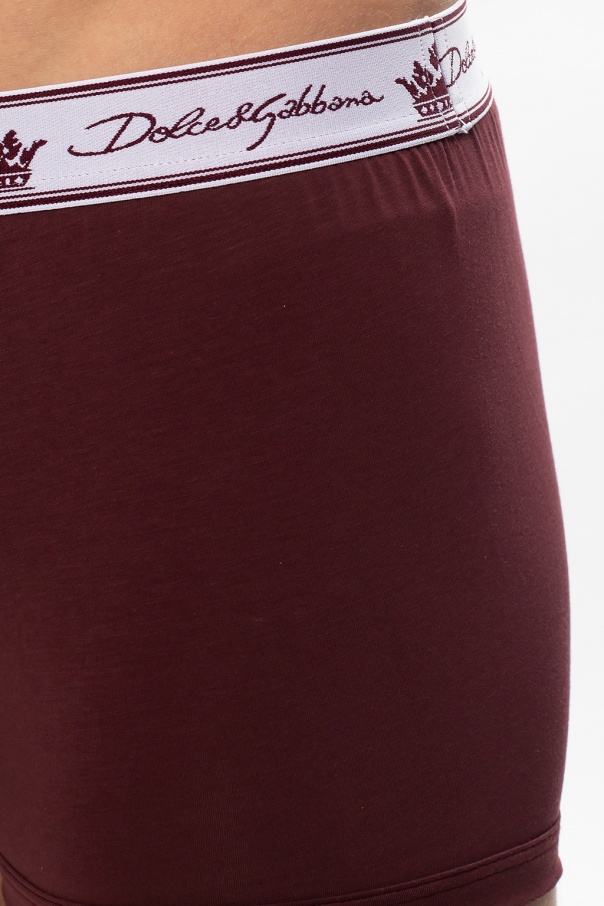 Maroon boxers from Dolce & Gabbana. Crafted from cotton, this pair is finished with a white elasticated waistband embroidered with red logo.
