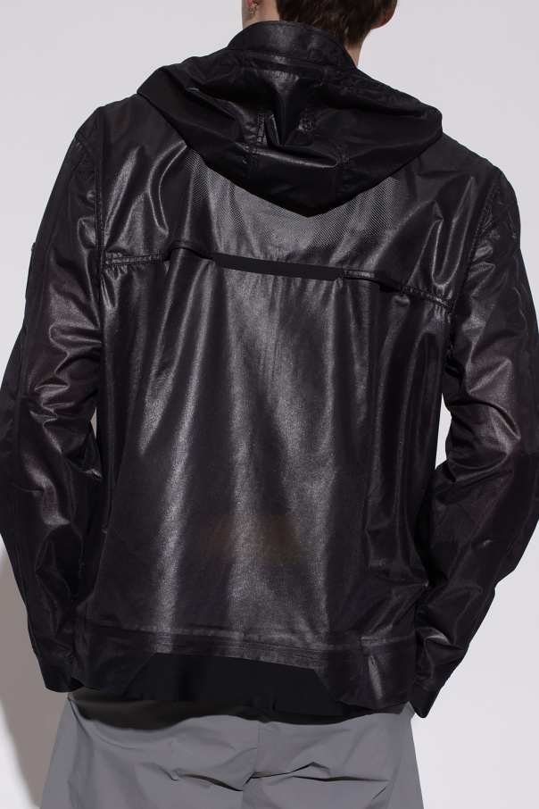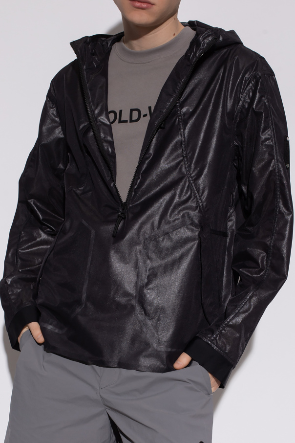Black jacket from A-COLD-WALL*. Fastened with a zip, this garment features a drawstring hood, white logo at the back, two snap-fastened pockets and long sleeves.