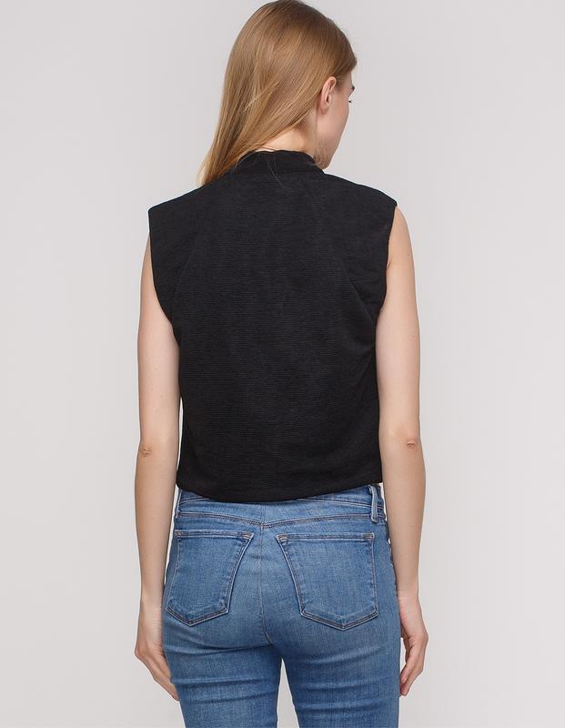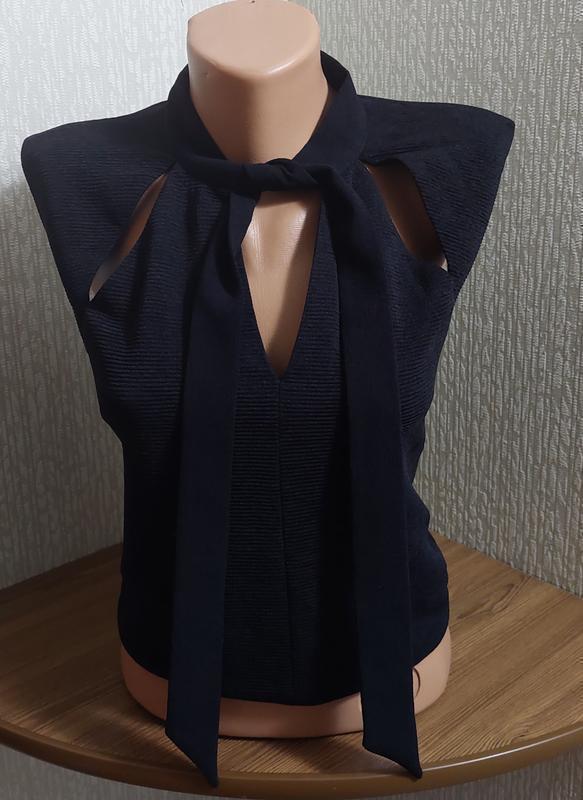 Топ прямого силуэта из гладкой ткани. Модель с миниатюрным рукавом и V-вырезом с завязкой.