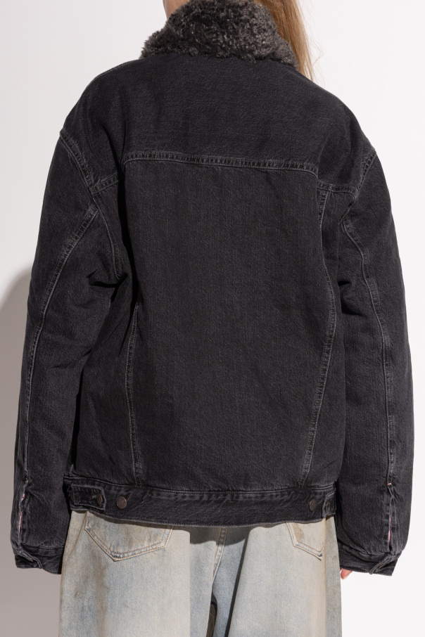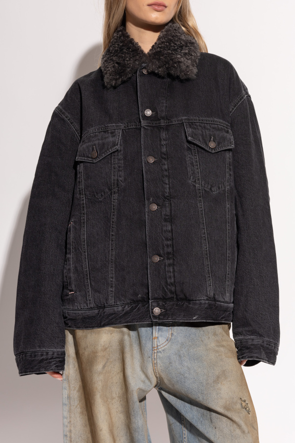 Introducing the epitome of urban chic: the Black Denim Jacket with Faux Fur Collar by Acne Studios. Crafted with a robust, diagonal weave characteristic of premium denim, this jacket is both durable and distinctly stylish. The dominant black hue is elegantly contrasted by a plush, lighter-toned faux fur collar, adding a touch of sophistication to its casual silhouette. The jacket's design is accentuated with metal buttons, each engraved with a unique logo or pattern, hinting at the brand's attention to detail and quality. Functionality meets fashion with its four pockets - two flat chest pockets and two side pockets, all secured with buttons, ensuring your essentials are always within reach. Despite the description's mention of "short sleeve," the jacket features long sleeves, suggesting a possible variance or a special edition in the design. Visible, contrasting seams traverse the jacket, enhancing its structure and adding character to this standout piece. With its loose, relaxed fit, it epitomizes casual, city-inspired fashion, making it a versatile addition to any wardrobe. Why Purchase This Product? Exceptional Quality: Made from 100% cotton with a 100% polyester lining, offering durability and comfort. Designer Craftsmanship: A signature piece from Acne Studios, known for their innovative and contemporary designs. Versatile Style: Perfect for layering, this jacket transitions effortlessly from day to night, casual to chic. Functional Features: Equipped with four practical pockets and secured with stylish metal buttons. Unique Details: The contrasting faux fur collar and visible seams set this piece apart from conventional denim jackets.