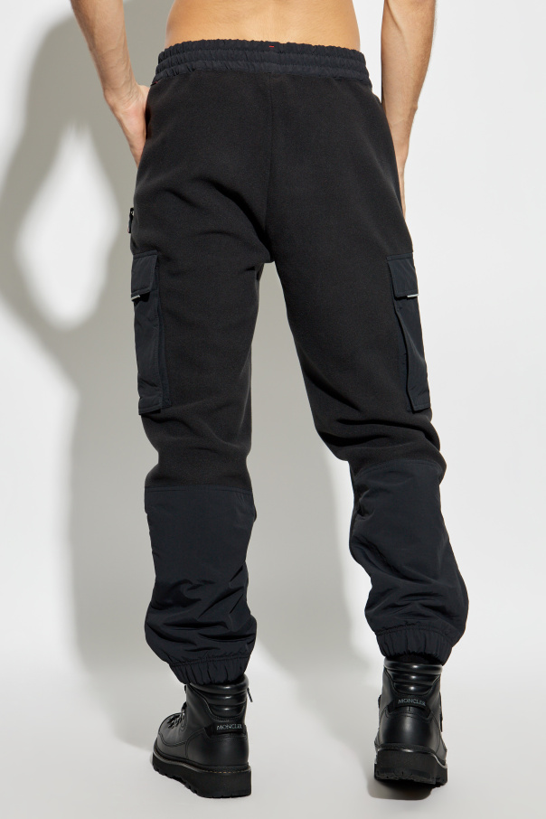 Introducing the MONCLER GRENOBLE APRES-SKI pants, a luxurious addition to your winter wardrobe. Crafted by the renowned designer Moncler Grenoble, these black sport pants epitomize the fusion of functionality and high fashion. The pants boast a relaxed fit with an elastic waistband, complemented by drawstring ties for an adaptable fit. Designed for both style and practicality, they feature spacious cargo pockets with flaps, perfect for carrying essentials. The material, made entirely of polyester, ensures a soft and comfortable touch, ideal for colder days. Finished with ribbed cuffs at the ankles, they offer a snug fit, while a subtle logo in navy, white, and red near the pocket adds a touch of elegance. Part of the active ski wear line, these pants promise durability and comfort in winter climes. Why Purchase This Product? Exquisite design by Moncler Grenoble. Perfect blend of style and practicality. Soft, warm material suitable for winter. Functional cargo pockets for added convenience. Elegantly branded with a discreet logo.