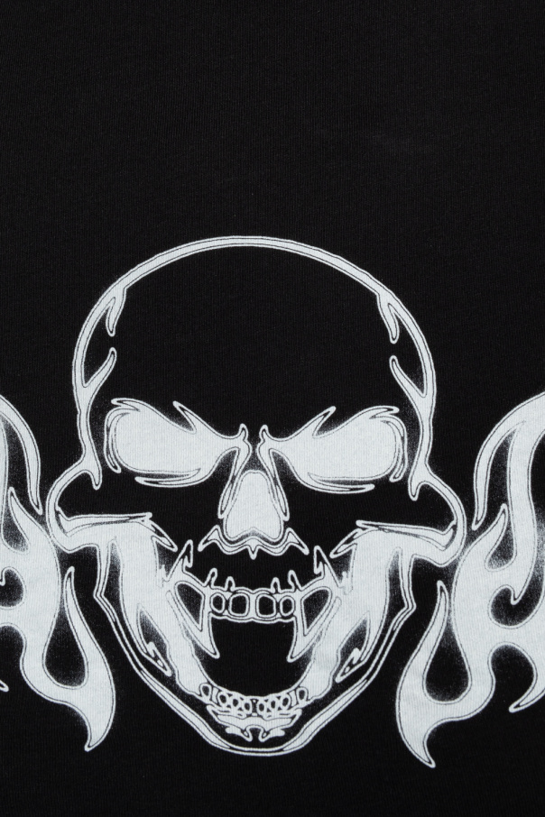 Black crewneck T-shirt Heron Preston. Cut from cotton with a cropped fit, this style features short sleeves and a white graphic print accompanied by a logo patch on the front.