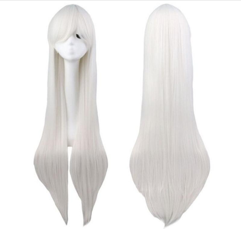 Длинный парик белый. Прямые волосы с удлиненной челкой, выглядят потрясающе и