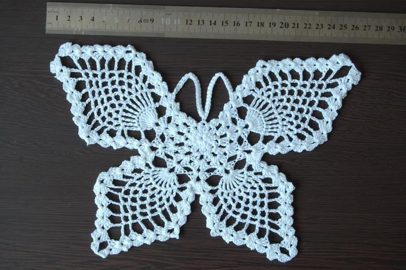 Салфетка крючком - подставка под чашку в виде бабочки из разноцветных хлопковых нитей. 26 см Цена за 1 шт. Салфетка крючком - подставка под чашку в виде бабочки из разноцветных хлопковых нитей. 26 см Цена за 1 шт.