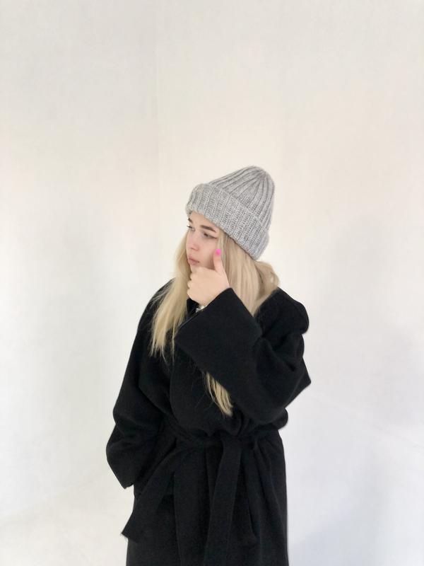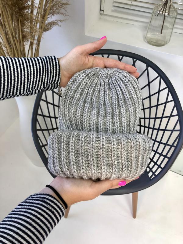 Сіра об'ємна зимова/осіння в'язана шапка 50% шерсть, 50% акрил Подвійний підворот (можна моделювати як завгодно) 12 кольорів в наявності (дивіться інші мої оголошення)