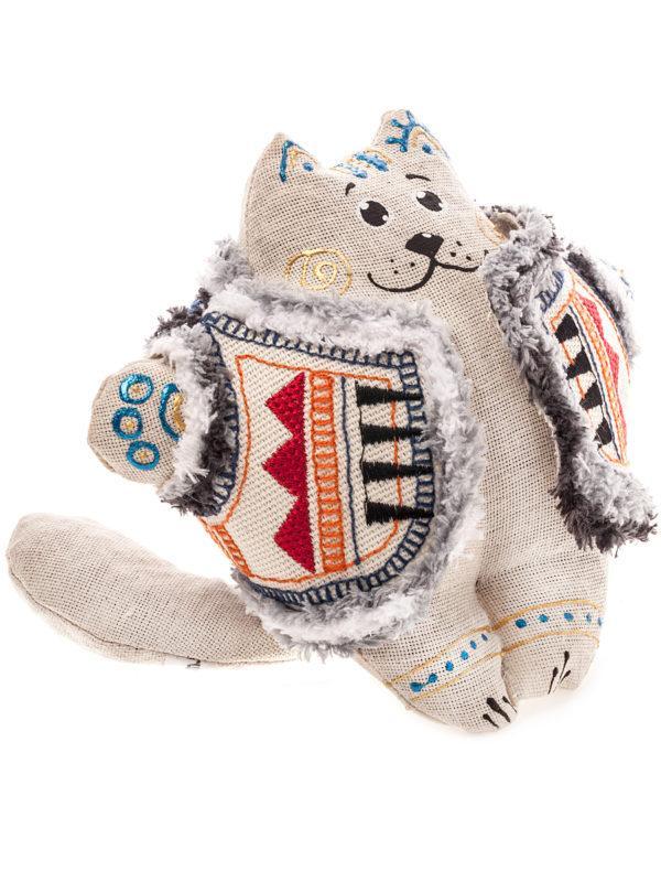 Кіт пошитий з натуральних тканин, наповнений гречаним лушпинням. Етно розписи