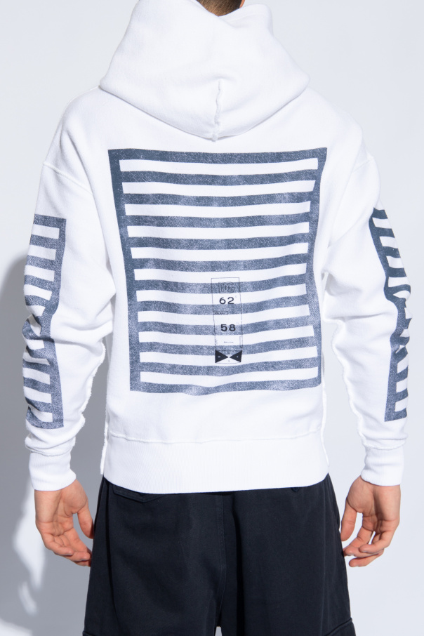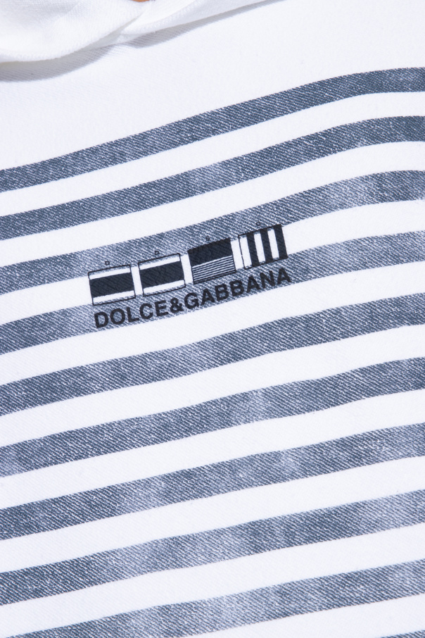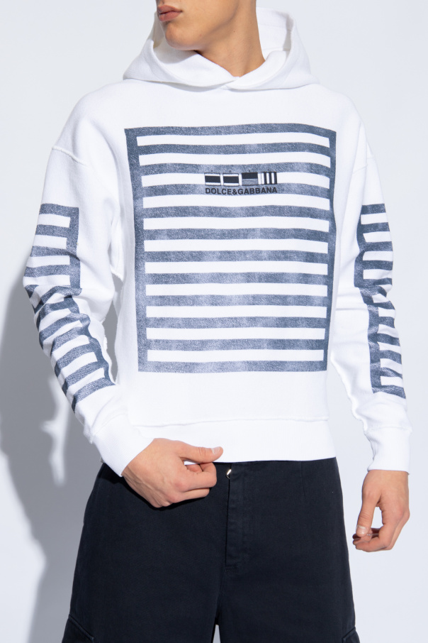 White hoodie from Dolce & Gabbana. Made of cotton, this design features a navy stripe pattern, logo, ribbed trims at the hem and cuffs.