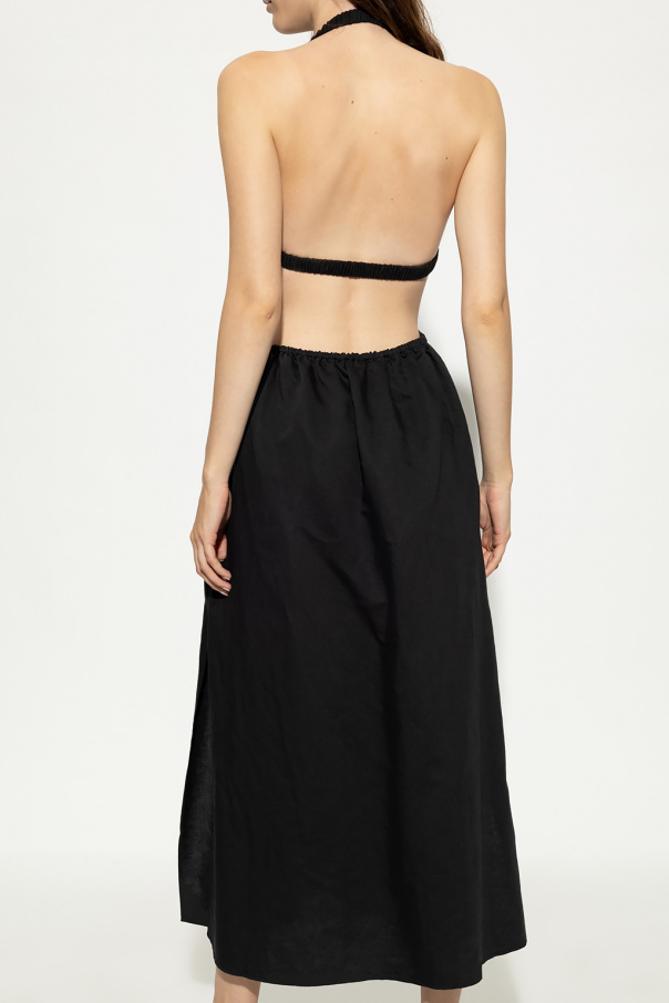 Black ‘Ludo’ dress from AllSaints. Crafted from a linen and cotton blend, this style is fitted at the waist and detailed with elastic trims, cutaway side detailing and a denuded back.