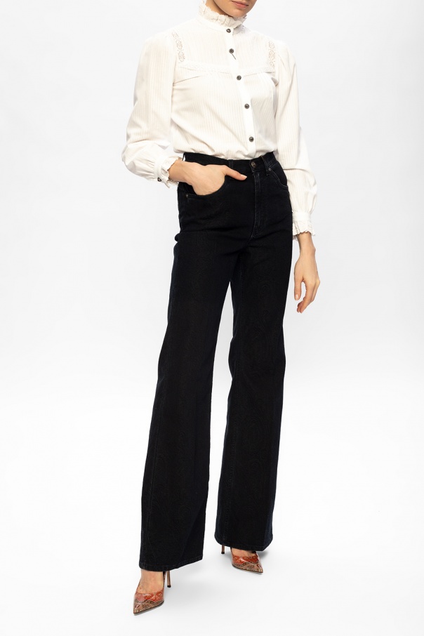 Multicolored stiletto pumps from Etro x Gianvito Rossi. Resting on a beige leather sole, this pointed toe design is decorated with the signature oriental motif.