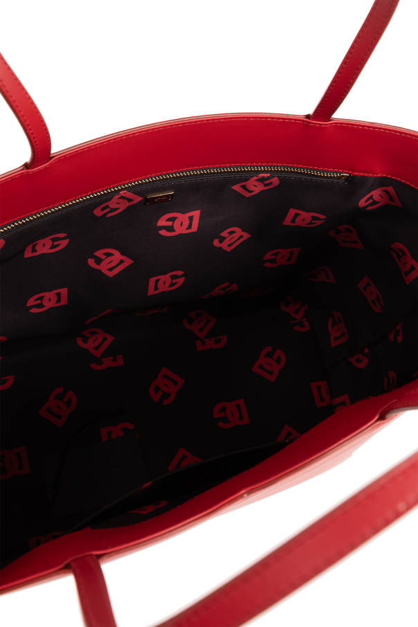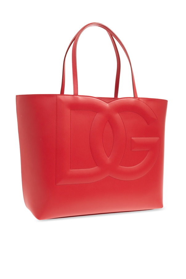 Red ‘DG Logo Medium’ shopper bag from Dolce & Gabbana. Made from smooth calf leather, this design showcases the brand's logo on the front, two half-round straps, gold-tone metal hardware as well as a monogrammed black interior with one compartment, one zip pocket and one slip pocket.