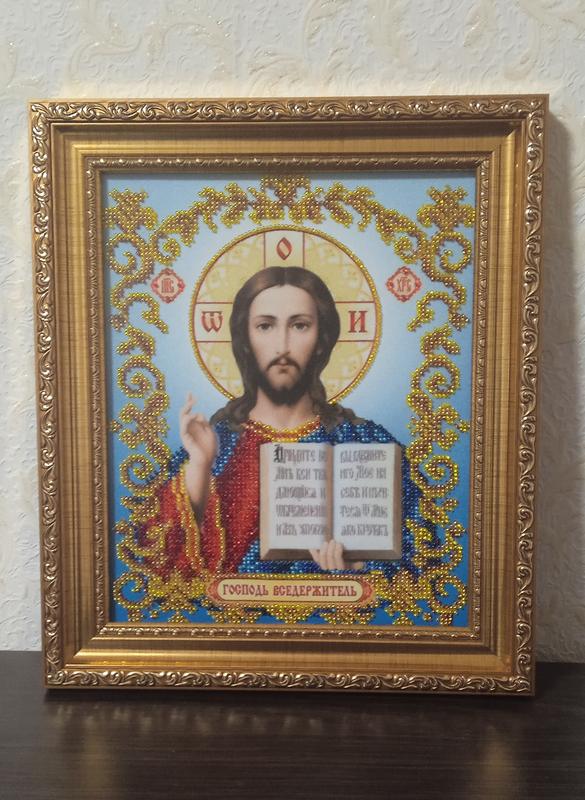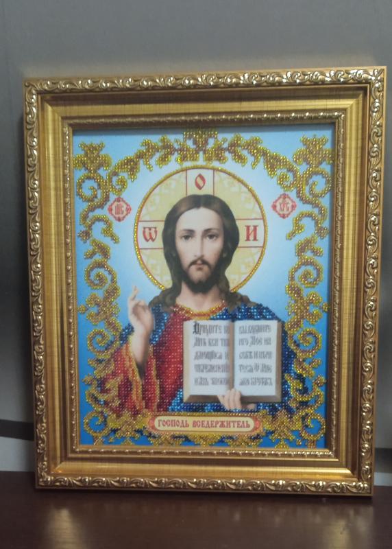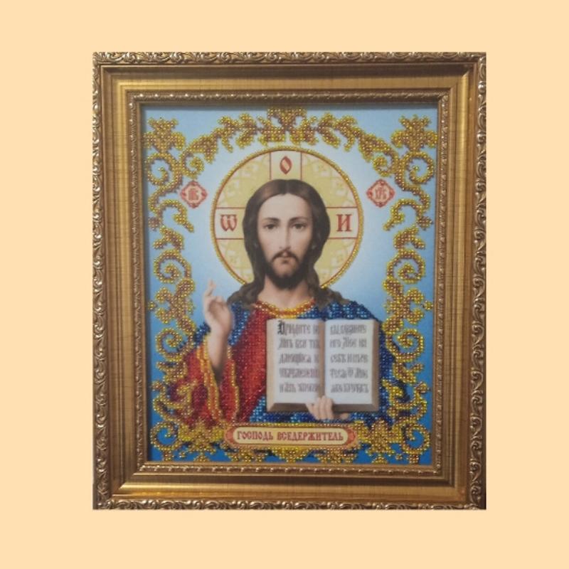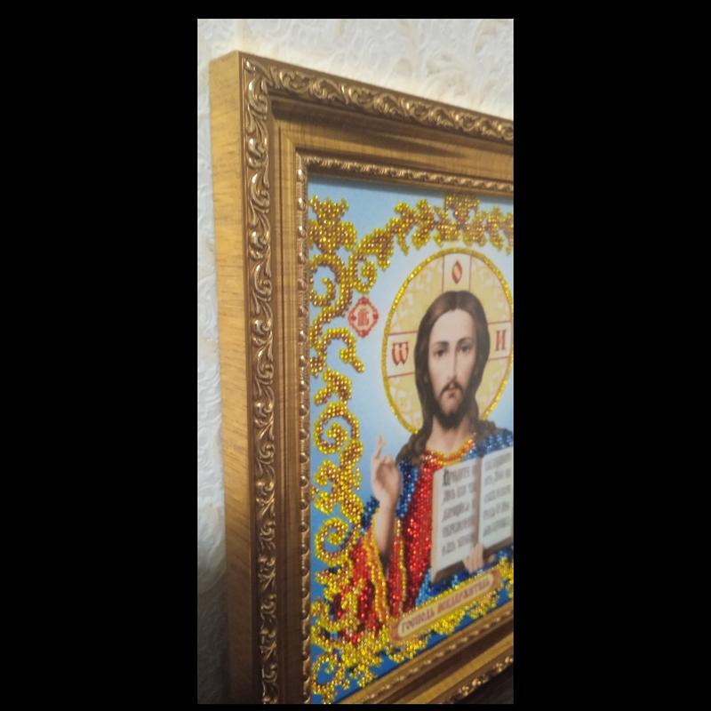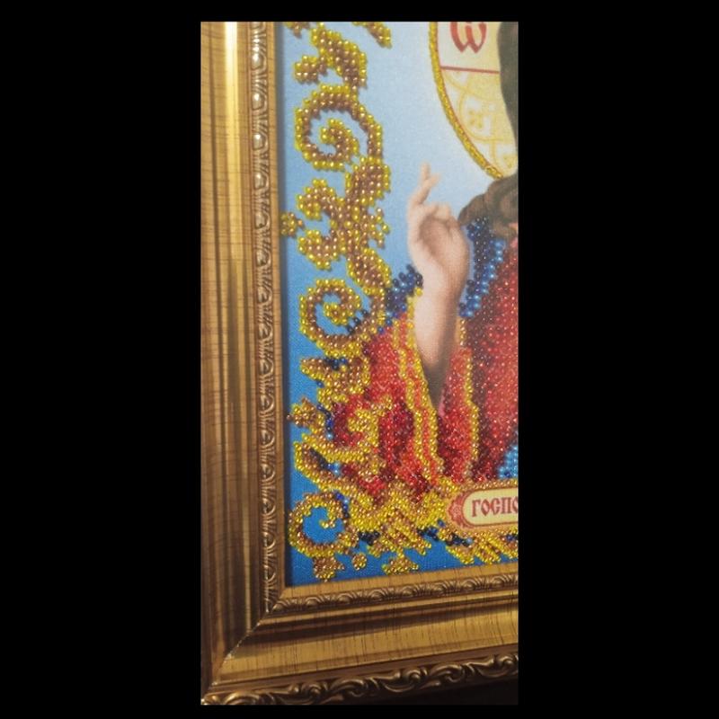 Ікона ручної роботи вишита бісером в рамі "Ісус Христос Вседержитель" У вишивці використаний чеський бісер PRECIOSA.
