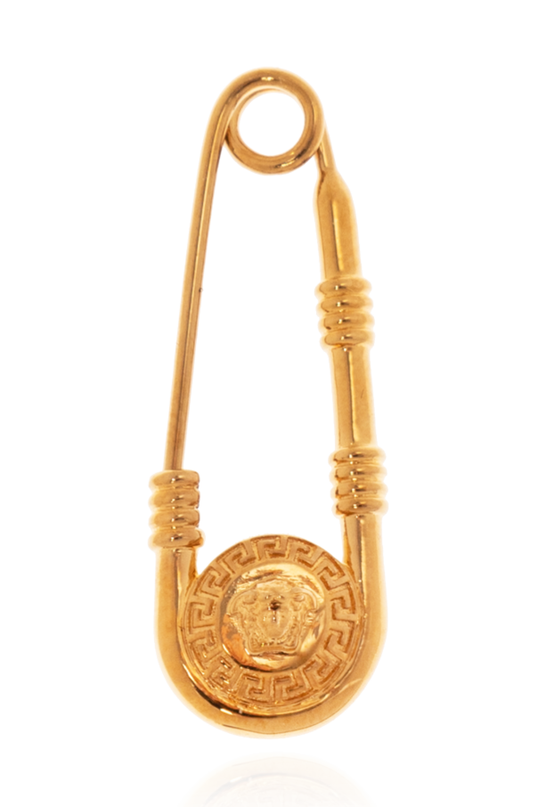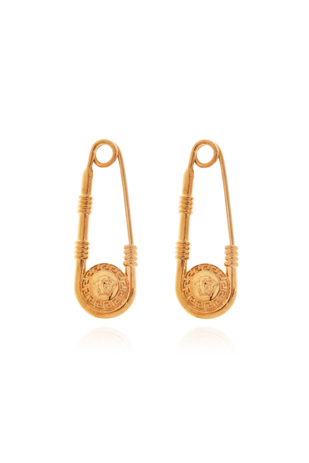 Gold-tone safety pin earrings from Versace. Made of brass, this pair is decorated with the brand’s signature Medusa head detail.