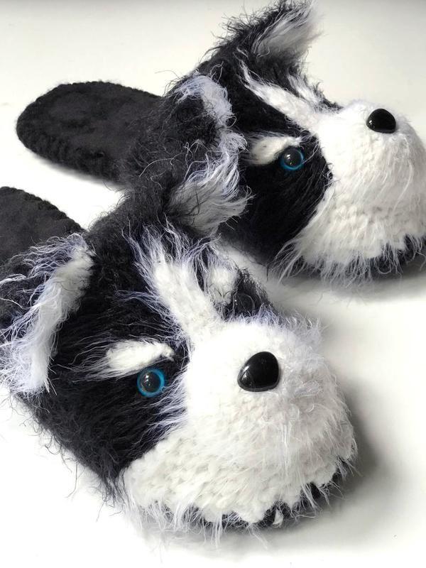 Авторские домашние тапочки «Хаски» на фетровой подошве.