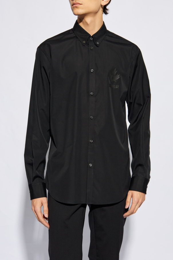 Introducing the epitome of sartorial elegance, the Dsquared2 Logo Shirt. Crafted from 100% cotton, this exquisite piece showcases a sleek black hue, exuding a sophisticated sheen that subtly catches the light. Its design is a harmonious blend of classic and contemporary, featuring a round neckline, long sleeves, and a refined button-down collar that adds a touch of traditional charm. The shirt's allure is accentuated by the discreet yet distinguished DSQUARED2 logo, a stylized maple leaf with the brand's name elegantly positioned below. This logo, rendered in a shade matching the shirt's fabric, serves as a testament to the brand's attention to detail and quality. The shirt's silhouette is meticulously tailored to flatter the physique, offering a fit that is snug yet comfortable, ensuring a polished appearance without compromising on ease of movement. From every angle, this shirt presents a clean, unembellished design, its back mirroring the front's minimalist aesthetic. This garment is secured with buttons, each chosen to complement the shirt's overall design seamlessly. Why Purchase This Product? Exemplifies luxurious craftsmanship with high-quality, lustrous cotton material. Iconic DSQUARED2 logo adds a subtle, elegant branding touch. Versatile design suitable for both formal and casual occasions. Ensures a flattering fit that enhances the silhouette without restricting movement. A testament to timeless style with its classic color and sophisticated details.
