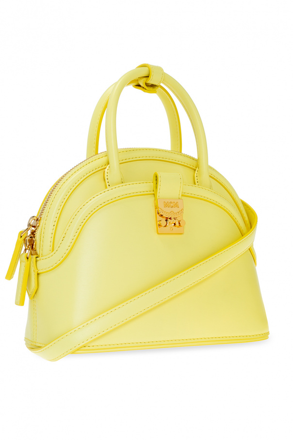 Yellow ‘Anna’ shoulder bag from MCM. Made of cowhide leather, this design fastens via a two-way zipper and showcases a gold-tone metal logo plaque, an external pocket with a magnetic closure on the front, two half-round handles, an adjustable and detachable shoulder strap, gold-tone metal hardware and an interior with one compartment, one slip pocket, one zipped pocket and a light brown microfibre lining with a suede-effect.
