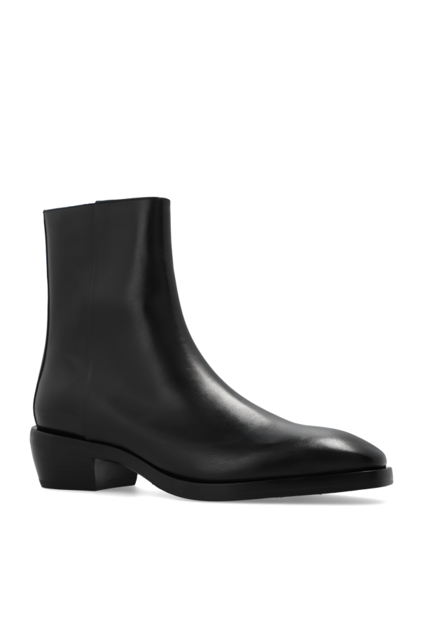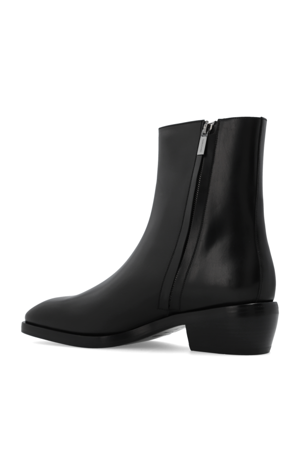 Black ‘Fuerte’ ankle boots from FERRAGAMO. Made of leather, this pair features a side zip, black leather outsole and medium insole.