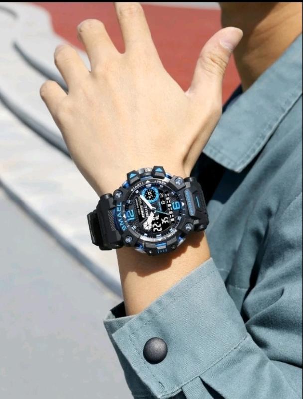 Новые. В упаковке, с биркою и техническим паспортом. Тактические водонепроницаемые часы Smael. Стильная, спортивная ,молодежная модель . Модель-новинка! Представлена в черно-синем цвете. Смотрится очень круто. Светодиодная подсветка, функция хронометра, будильник,календарь, двойной часовой пояс, водонепроницаемость до 50 м. Противоударный дисплей, корпус нержавеющая сталь, прорезиненный ремешок,на любой объем запястья. Смотрятся шикарно на мужской руке. Объемные и большие.