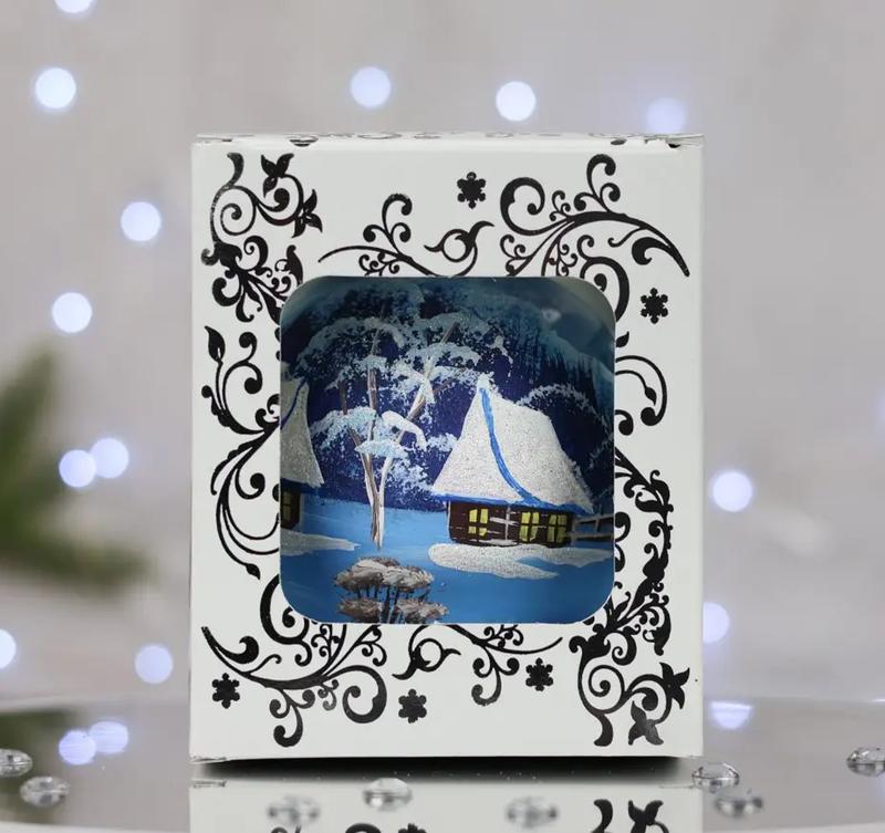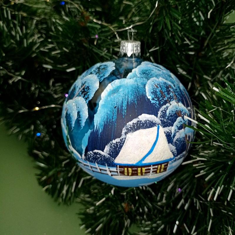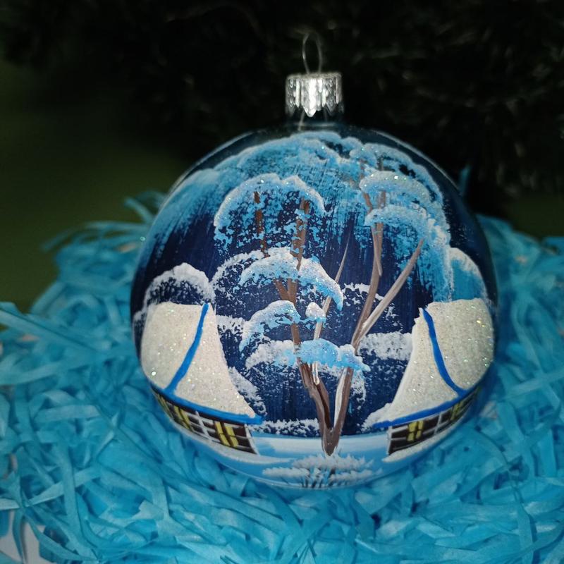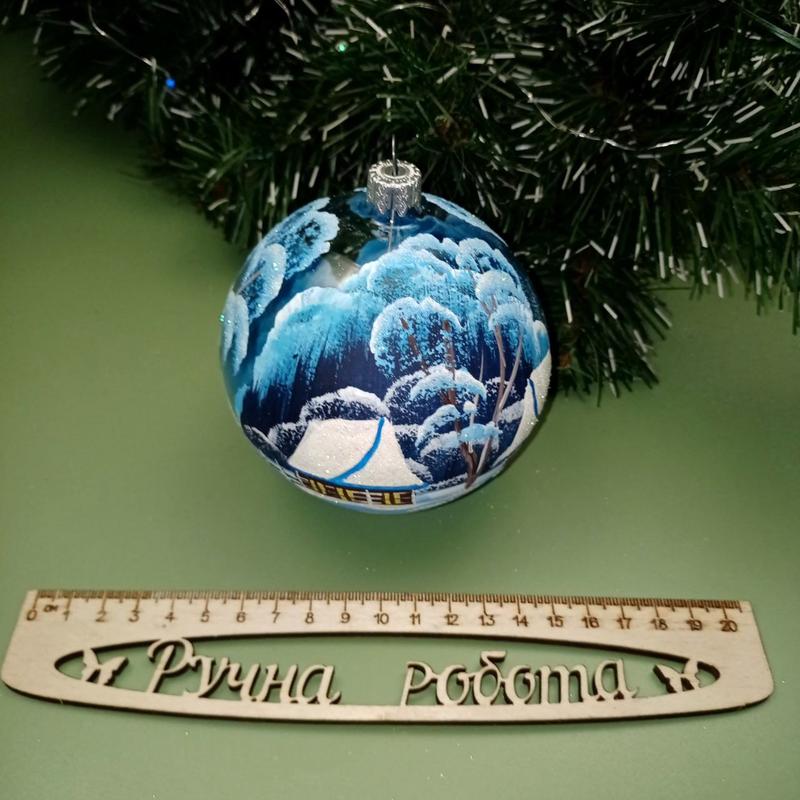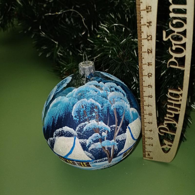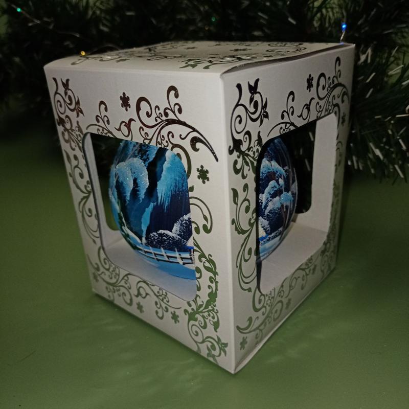 Скляна ялинкова іграшка ручної роботи в подарунковій упаковці. Повністю ручний розпис.