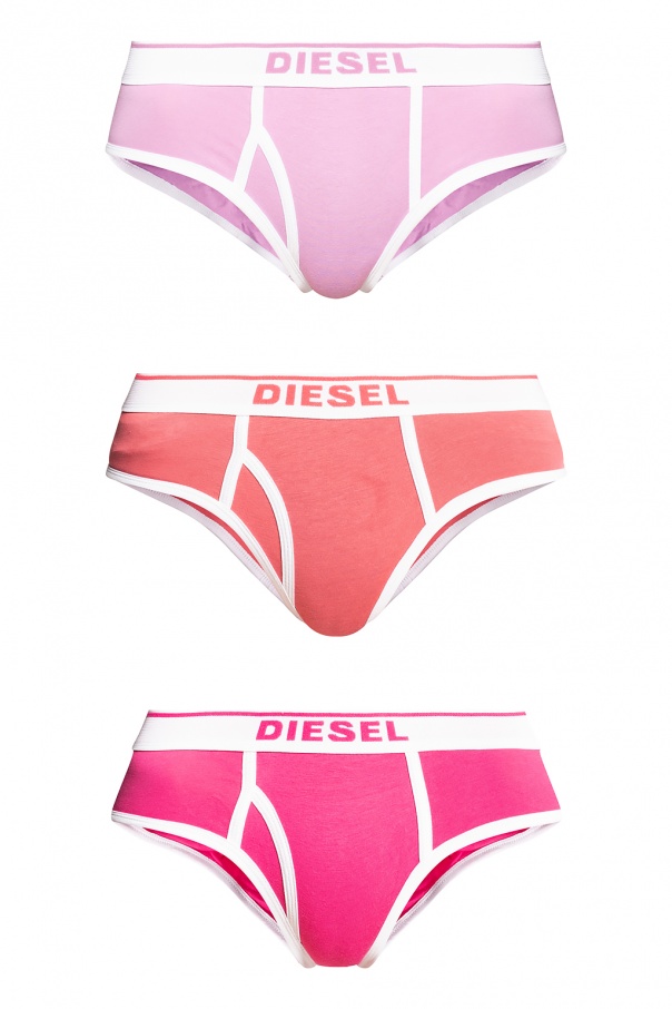 Pink, purple and orange briefs three-pack from Diesel. Crafted from cotton, each pair features an elasticated waistband with an embroidered logo.